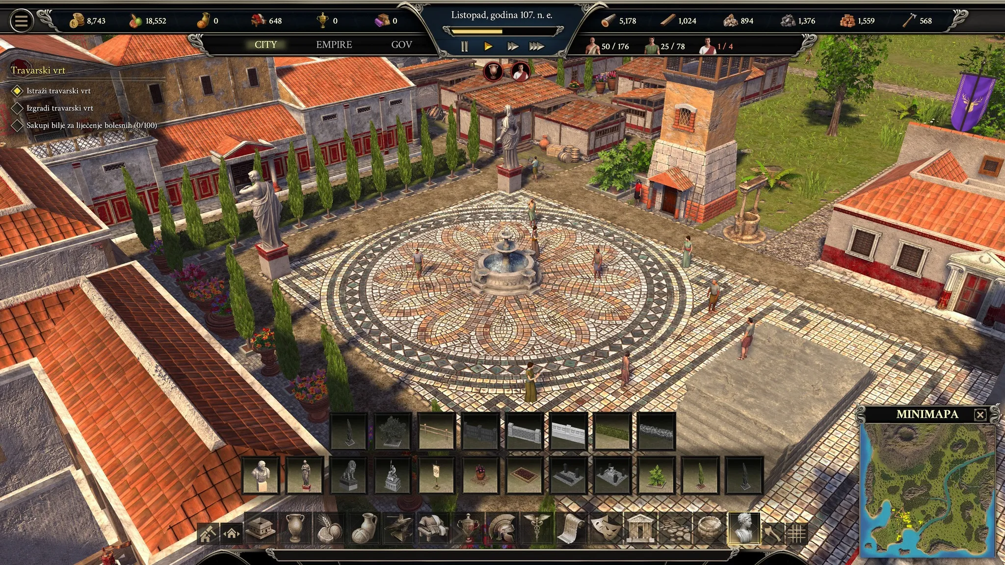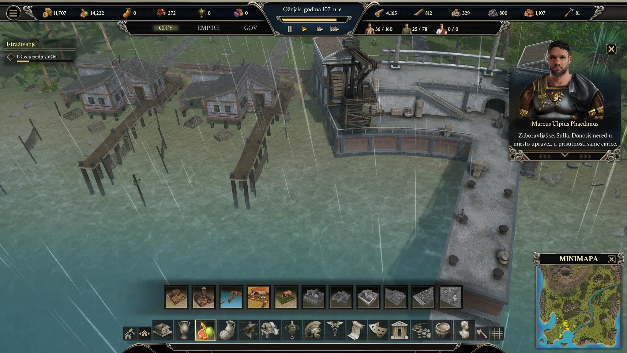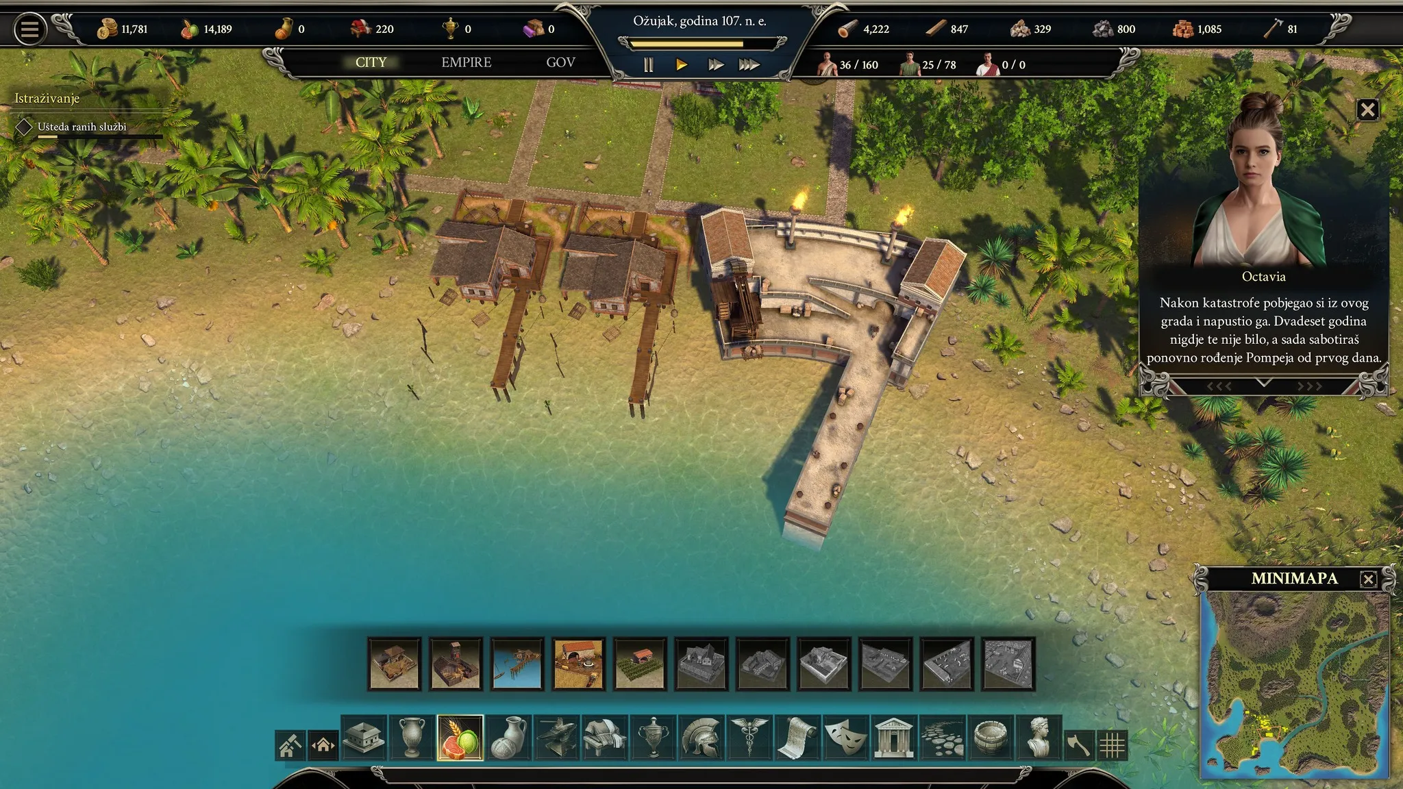 Naime, igra ne staje na ekonomiji i resursima. Ona vas uvodi u političko-društveni sustav Pompeja, gdje kao vođa donosite zakone, odlučujete o porezima, balansirate između interesa bogatijih i siromašnijih slojeva. Uz to, postoji i dinastijski aspekt – birate obitelj (koja stari s godinama i njihovi portreti u igri se mijenjaju u skladu s time), razvijate nasljednike, sklapate brakove iz koristi. Ove odluke nisu samo kozmetičke, već mogu dugoročno utjecati na stabilnost grada, a konkurentske obitelji koriste priliku i za sabotažu.